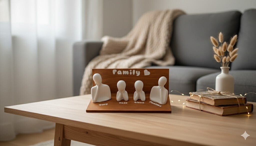 Immortalisez les liens qui vous unissent avec les compositions famille en plâtre. Chaque pièce est réalisée avec soin, en respectant un design moderne et des lignes sobres. Personnalisez votre composition pour créer un objet unique et chargé d'émotion.